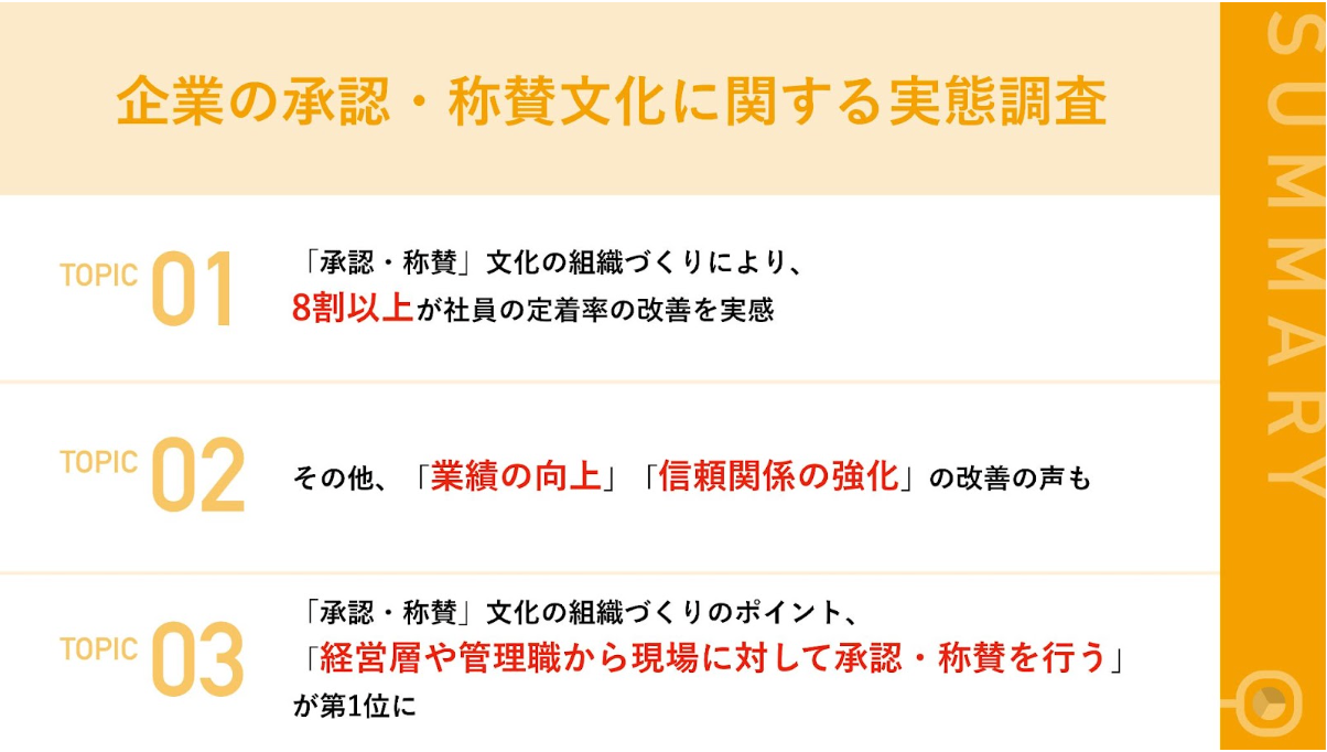 〜「褒め合う仕組み」を作る上で重要なポイントは「経営層や管理職から現場に対しての承認・称賛」〜