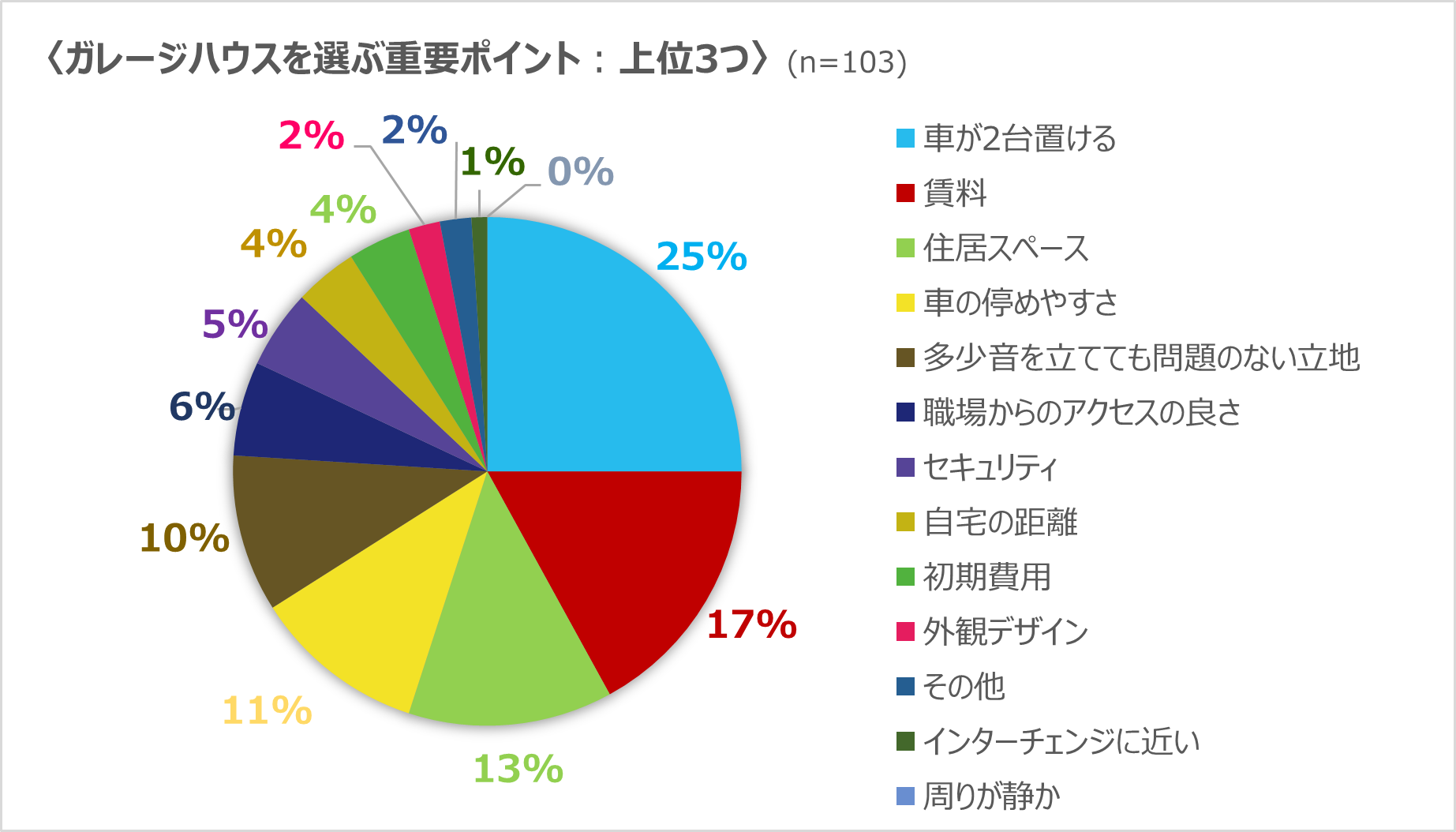 -ガレージハウスを選ぶ際のポイントは「車が2台置ける」が最も多く25%。