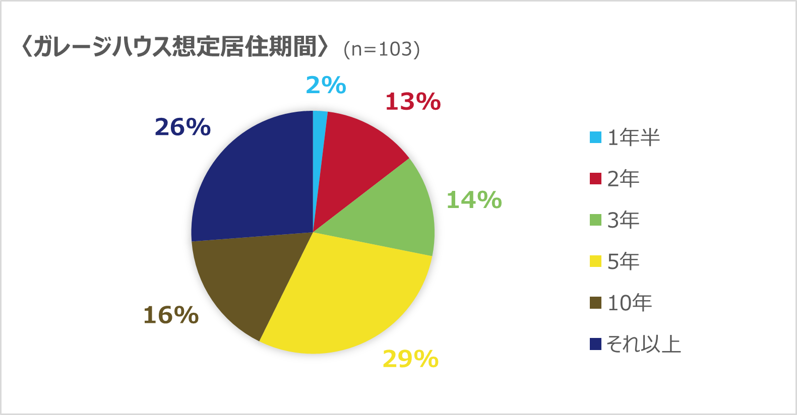 -賃貸ガレージハウスは長期の入居希望が多い傾向。10年以上住みたい方が42%となり、半数近くを占める。
