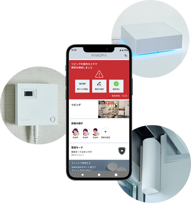 MANOMAは、「セキュリティ」、「見守り」、「オートメーション」に家事代行などの「家ナカサービス」を加えた、ライフスタイルに新たな体験価値を提供するスマートホームサービスです。ソニーのIoT機器とスマートフォンを組み合わせることで、思い通りにお家を便利で安心、快適にできます。