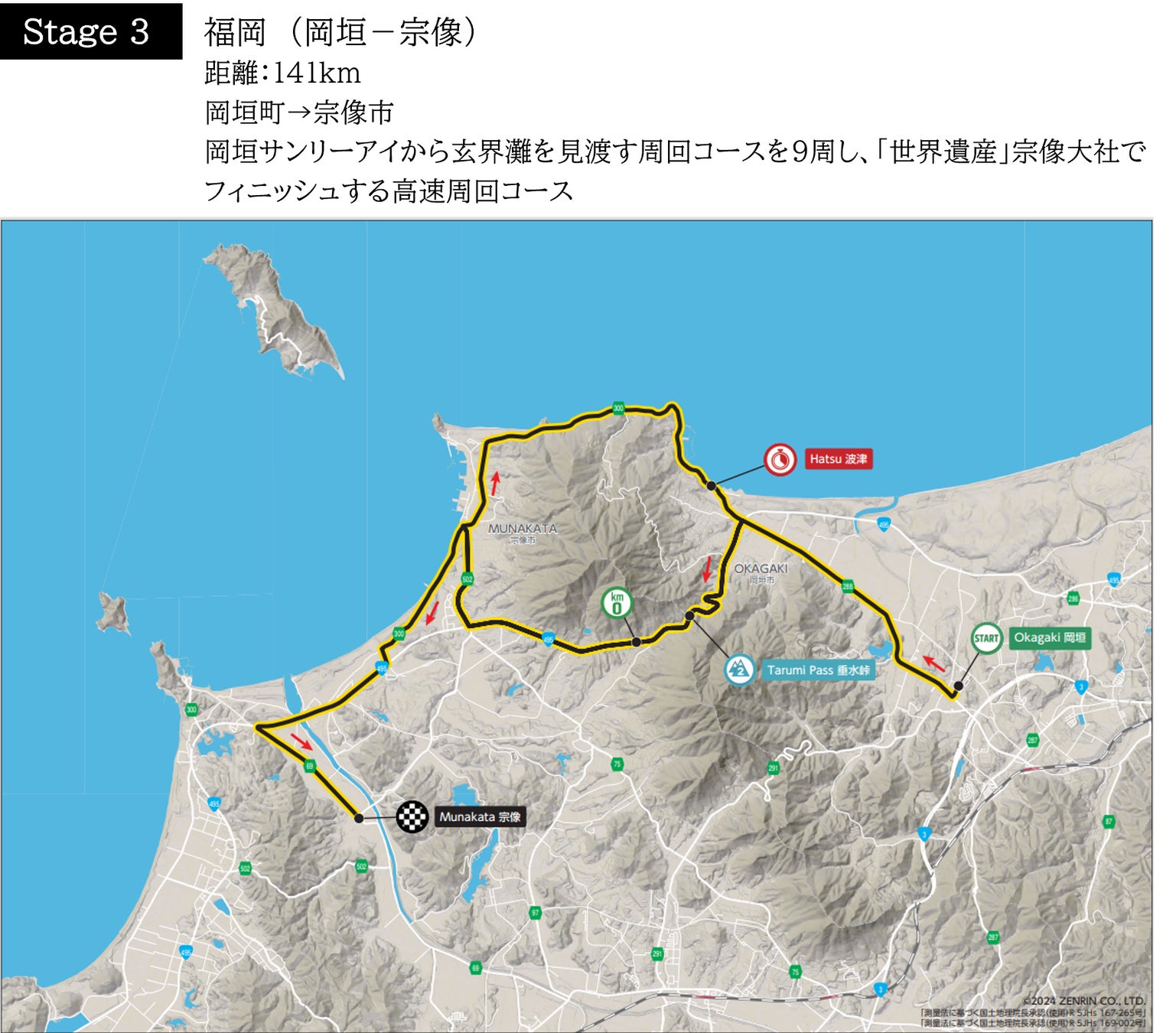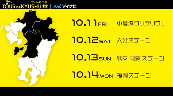 10月11日(金)小倉城クリテリウムを皮切りに、12日(土)大分ステージは別府市の立命館アジア太平洋大学から日田市の大原八幡宮前、13日(日)熊本阿蘇ステージは南小国町の瀬の本レストハウスから南阿蘇村役場、14日(月・祝)福岡ステージは岡垣町の岡垣サンリーアイから宗像市の「世界遺産」宗像大社まで、4日間で400km以上を走ります。