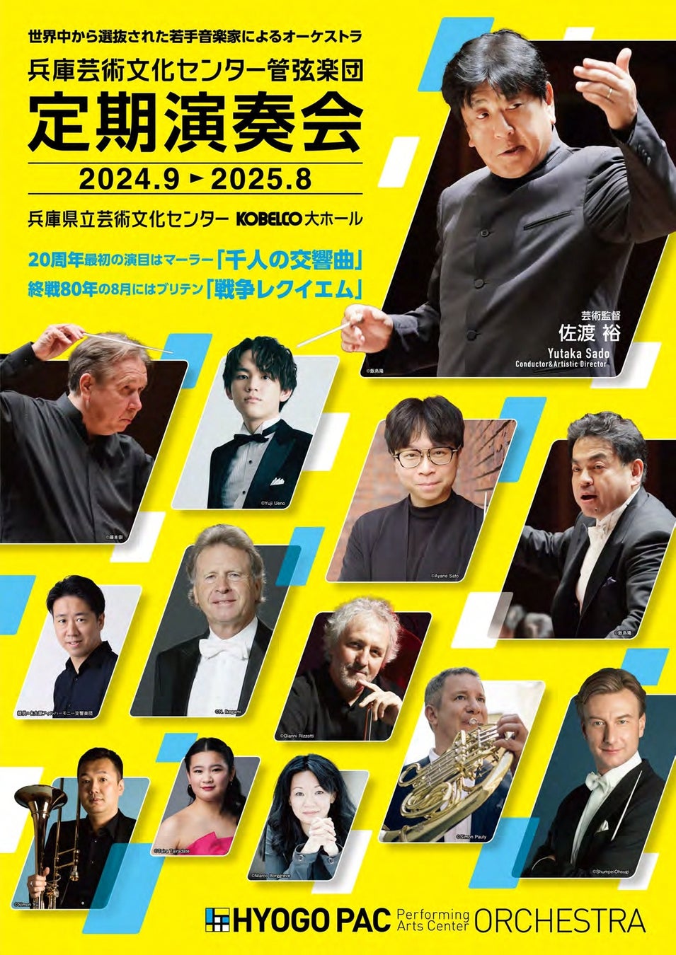 2024-25シーズンは、そんな記念すべき年を彩るにふさわしいラインナップをご用意しました。特に阪神・淡路大震災30年の日に祈りを込めて演奏する「千人の交響曲」、終戦から80年の夏に捧げる「戦争レクイエム」は、大編成のオーケストラに合唱を加えた桁違いのスケールを誇る作品で、私にとっても皆様にとっても特別な体験となることでしょう。他にもお馴染みの指揮者から初登場のソリストまで、多彩なアーティストとプログラムが揃っておりますので、ぜひ年間を通じて聴いていただければと思います。