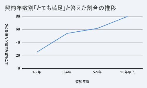 本調査では、「契約して終わり」の対極にある事例──契約年数が長くなるほど満足度が高まる傾向、当社が「経年優化」と呼ぶ現象──を、最長12年にわたる追跡データから報告いたします。