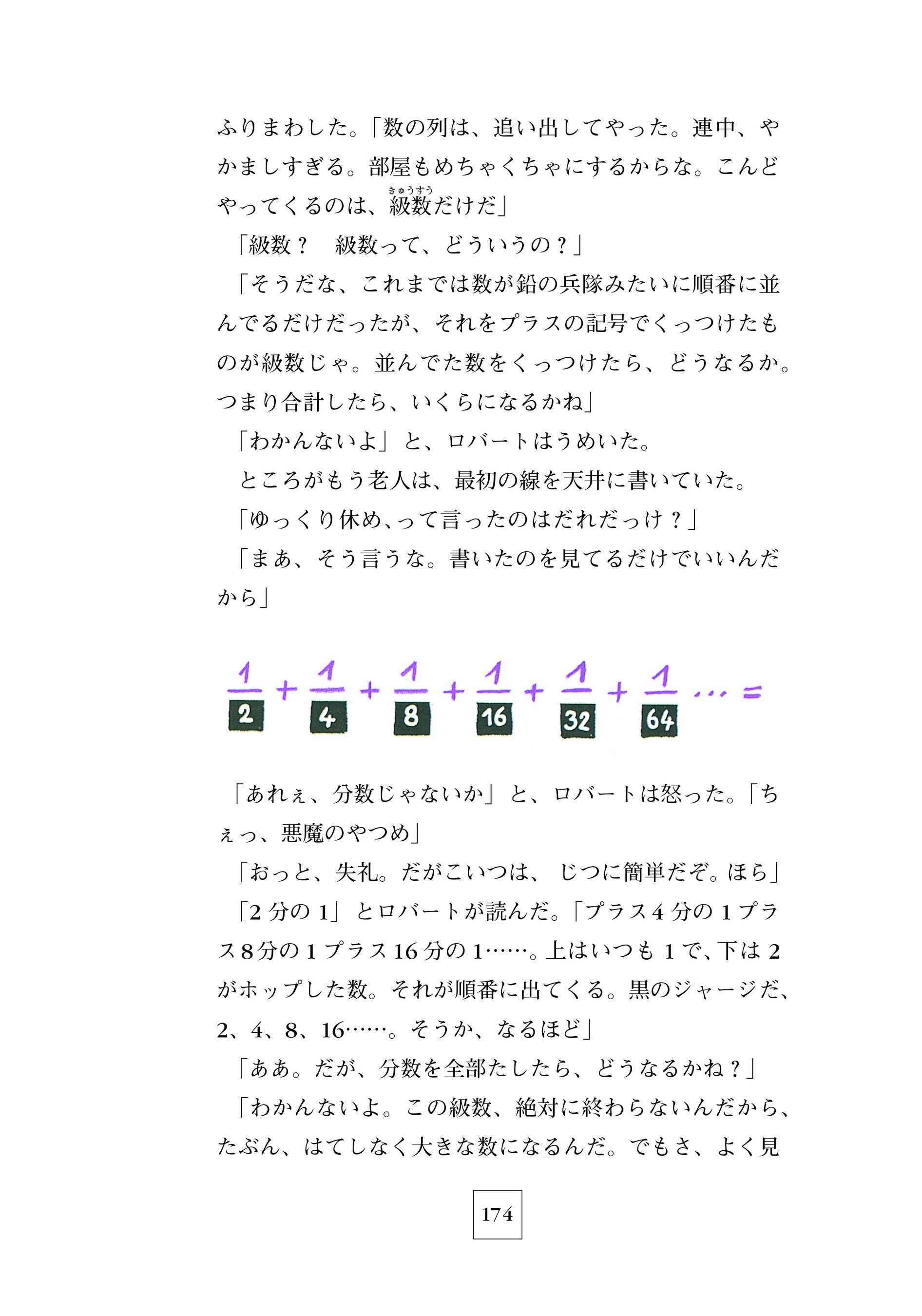 本書では「数の悪魔」が読者を数の不思議な世界へと誘い、算数・数学嫌いの子供や大人でさえもその世界に引き込まれていく。初版から実に59刷を数えていることからも、広く一般読者に受け入れられていることがうかがえる。年少者への配慮を十分に行いつつも本格的な数学の内容を扱っていることが特徴の一つである。例えば、0と1から始まる数の構成、有理数と無理数、数列の極限、数学における証明とは何か、多面体のオイラーの法則など、数学の入門段階での要点の数々を提示し、それらについて読者が楽しく理解を深められるように構成されている。本書の数学の普及への貢献は顕著であり、日本数学会出版賞にふさわしい。