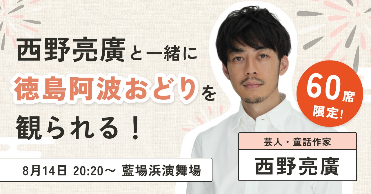 徳島の阿波おどりを芸人で童話作家の西野亮廣氏と一緒に観れるプランが新登場!クラウドファンディングサイトにて60個限定で販売を開始しました。