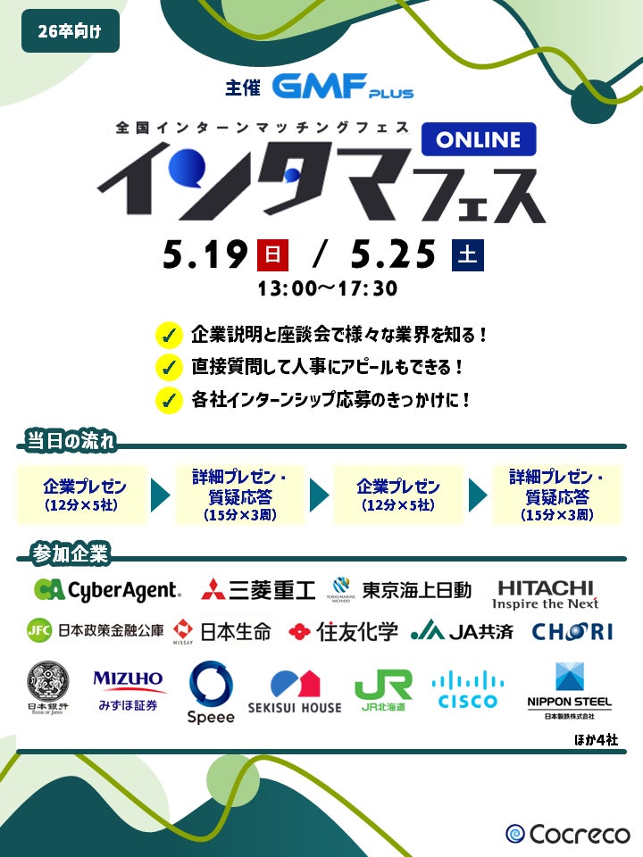 株式会社コクリコでは、地方旧帝大/国立大生限定向けの就活コミュニティ『GMF plus』を運営しており、本イベントはコミュニティ登録学生から参加を募りました。