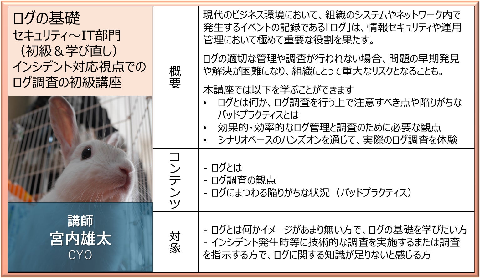 こんにちは。ログの基礎講座の講師を務める宮内です。本リリースを前に、某組織のデジタル系部門(非セキュリティ)の新人研修でトライアルで実施させていただきました。研修後の参加者からは、次のようなポジティブなフィードバックをいただきました。