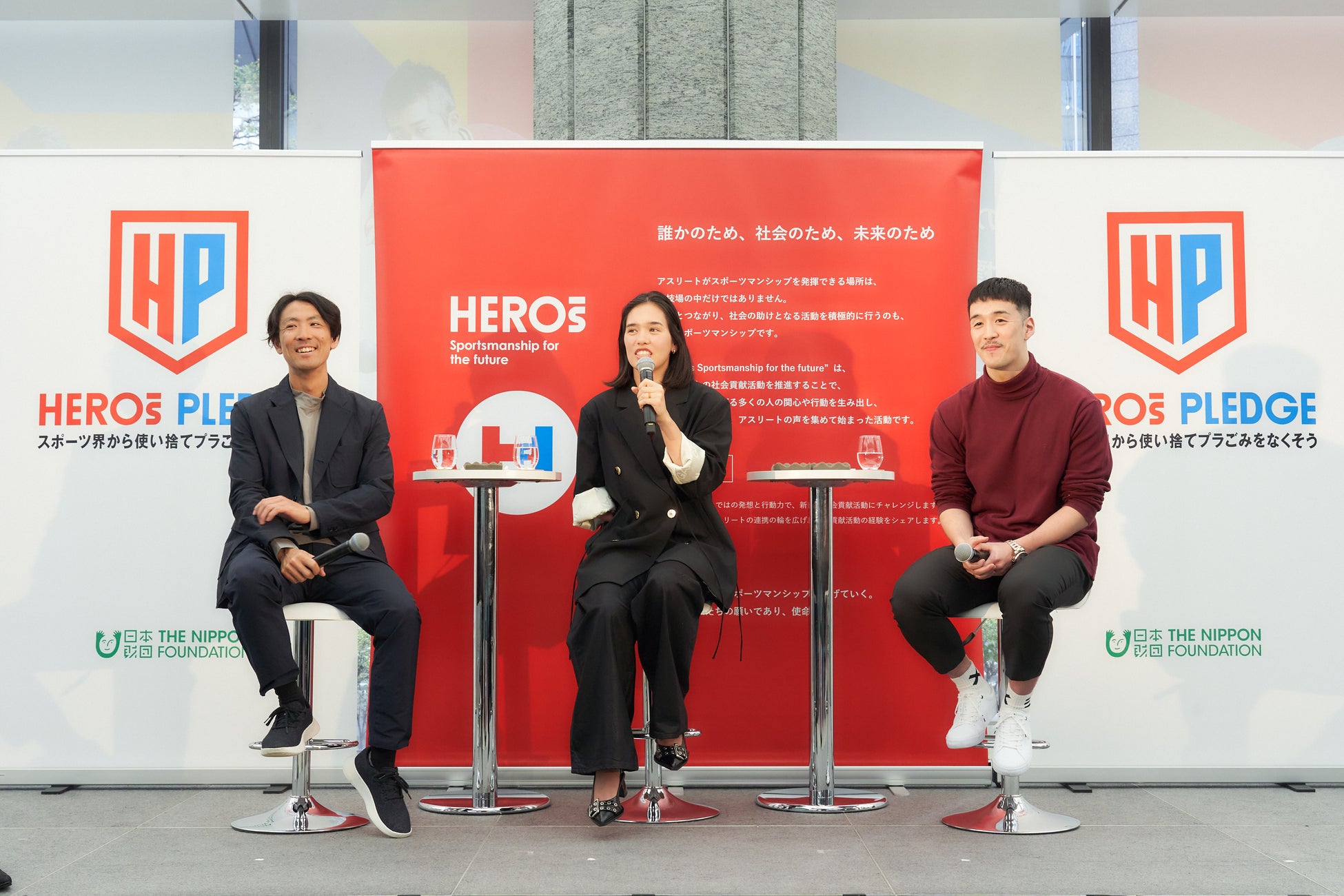 「HEROs PLEDGE」は、海洋汚染や異常気象など、地球規模で広がっている環境問題の原因のひとつである使い捨てプラスチックごみを、スポーツの興行において削減していくために、プロジェクトの参加者を募り、みんなでアクションしながら削減に取り組むスポーツ界横断のプロジェクトです。アスリートが起点となり、協会、連盟、クラブチーム、ファン、消費者、そして企業とともに、スポーツ界から使い捨てプラスチックの削減に取り組みます。
