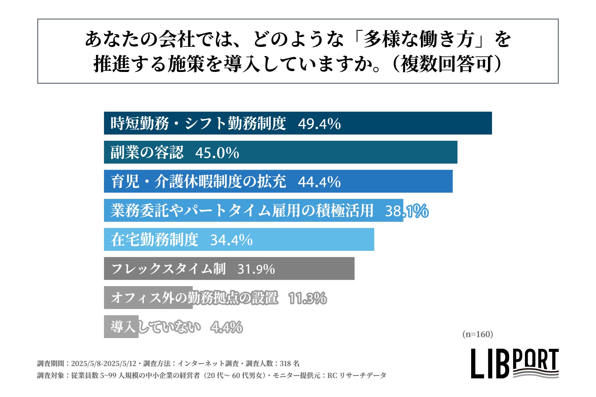 従業員数100名未満の中小企業の約半数で「多様な働き方」を推進する施策が導入されている!リブポート株式会社が中小企業における「多様な働き方」に関する実態調査を実施!