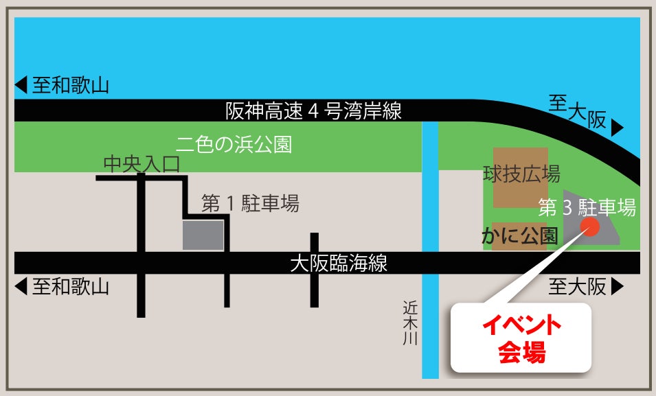 開催場所:府営二色の浜公園BLUEPARK 第三駐車場周辺(かに公園周辺)