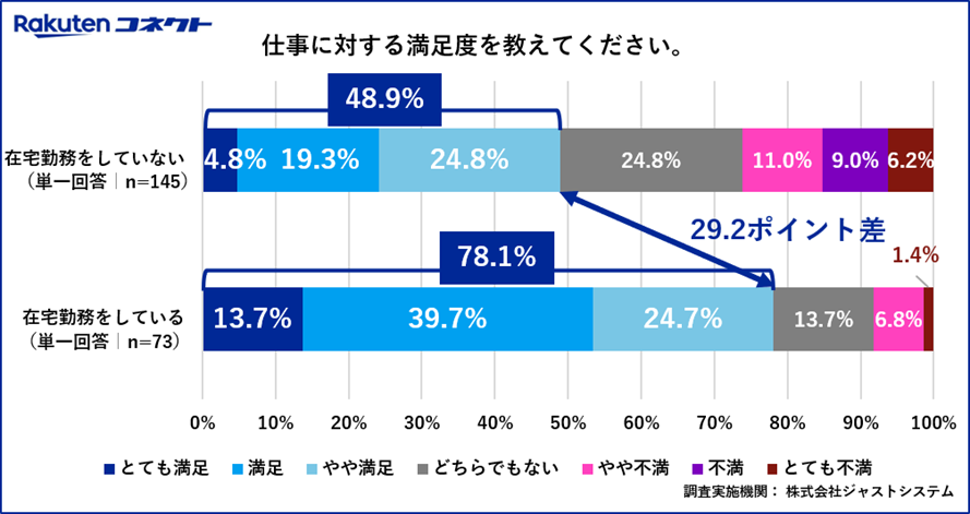 ■在宅勤務オペレーターの約8割が「仕事に満足している」と回答。在宅勤務をしていないオペレーターと比べて約3割高い結果に