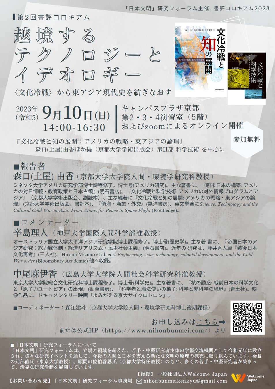 難民も日本も、皆でたくましく。Welcome Japan、「2023年度第2回 書評コロキアム 越境するテクノロジーとイデオロギー ‐〈文化冷戦〉から東アジア現代史を紡ぎなおす‐」に後援