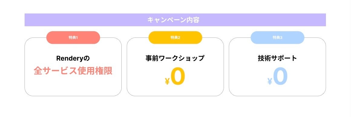 この度Renderyの正式リリースを記念いたしまして【先着10社様限定】でエンタープライズプランの初月費用を無料にさせていただく限定キャンペーンを実施させていただくことになりました。