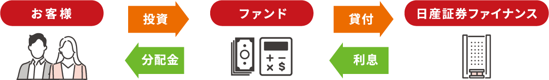 日産証券ファイナンスから受け取った利息を元にお客様に分配金を支払います。