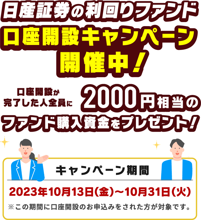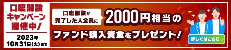 キャンペーン期間中に口座開設のお申込みをした方全員にファンド購入に使える2000円分のキャンペーンキャッシュをプレゼントします。