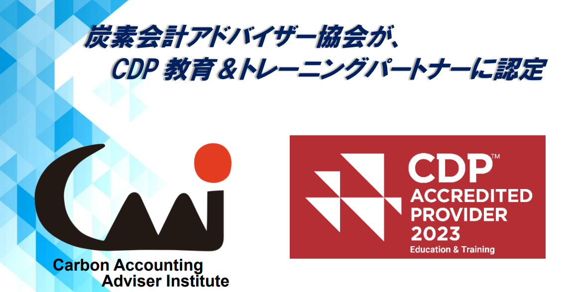 2023年10月10日、国際的な基準で組織のGHG排出量を正確に算定できる人材育成を目指す、一般社団法人 炭素会計アドバイザー協会(代表理事:鈴木修一郎、所在地:愛知県名古屋市)は、気候変動に関する世界的なNGOである一般社団法人 CDP Worldwide-Japanの教育&トレーニングパートナーに認定されましたことをお知らせします。