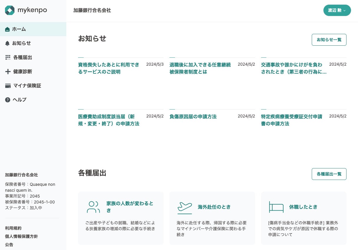 中でも特に業務DXとユーザビリティ向上を目指し、当健保ではエンジニアが加入事業所や加入者(被保険者・被扶養者等)向けのプラットフォーム - mykenpo - を開発しています。また今後、スタートアップが開発するソリューションの積極的な活用も目指しています。