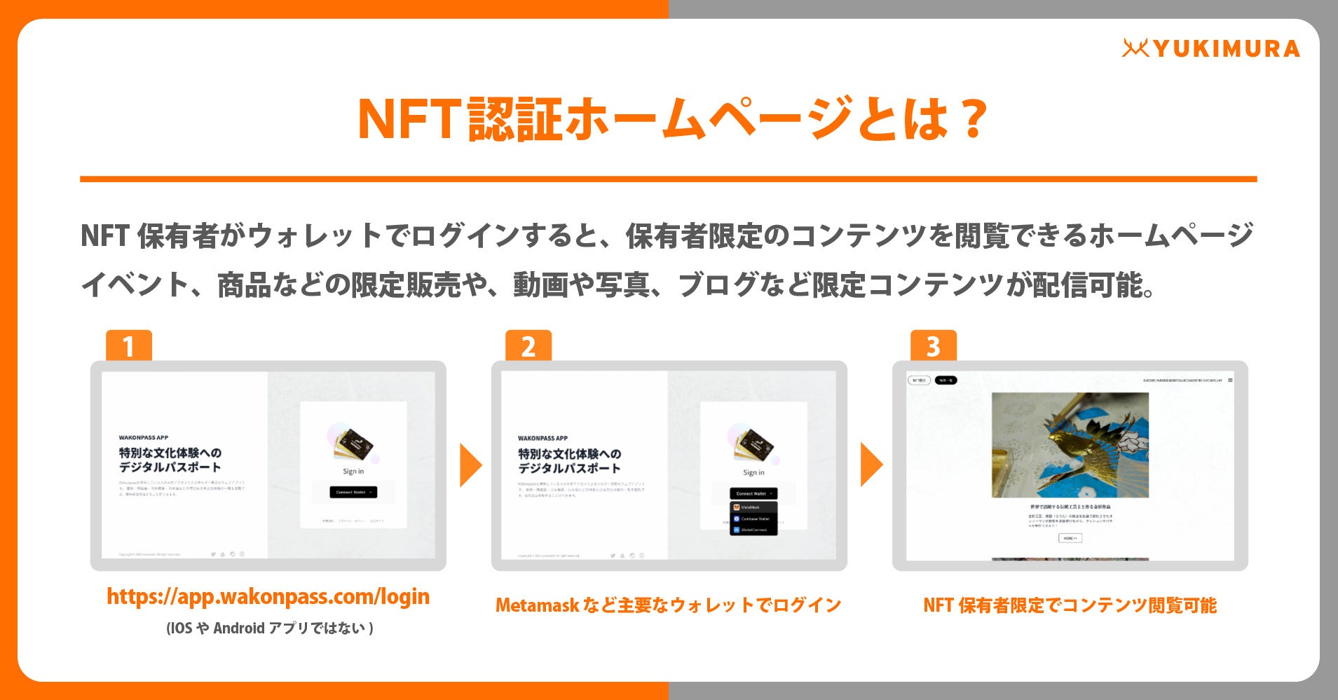 法人向けのNFT配布及びコンサルティング事業を展開する株式会社YUKIMURAは、NFT保有者限定でコンテンツ閲覧できるWeb制作事業『TokenGate Web』をリリース。「NFT受取→ホームページ認証→独自コンテンツ閲覧」というWeb3時代の新しいUXを法人及び自治体に提案して参ります。