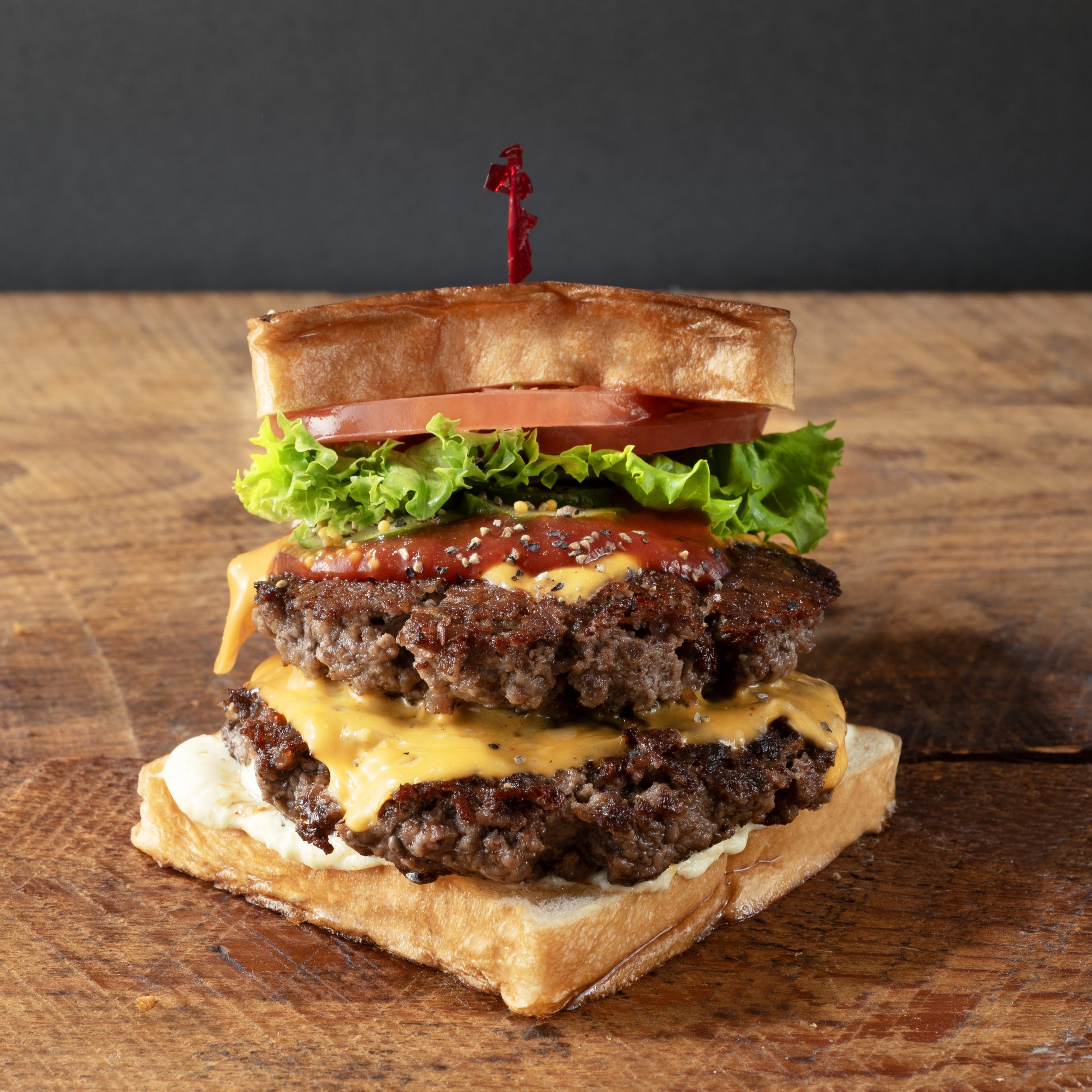 ★自家製バンズ(パン):店内併設のベーカリーで小麦粉から仕込み、発酵・焼成まで行う完全自家製。北海道産小麦とバターを使用したオリジナルレシピで、“四角いハンバーガー”の象徴的なビジュアルを生み出しています。