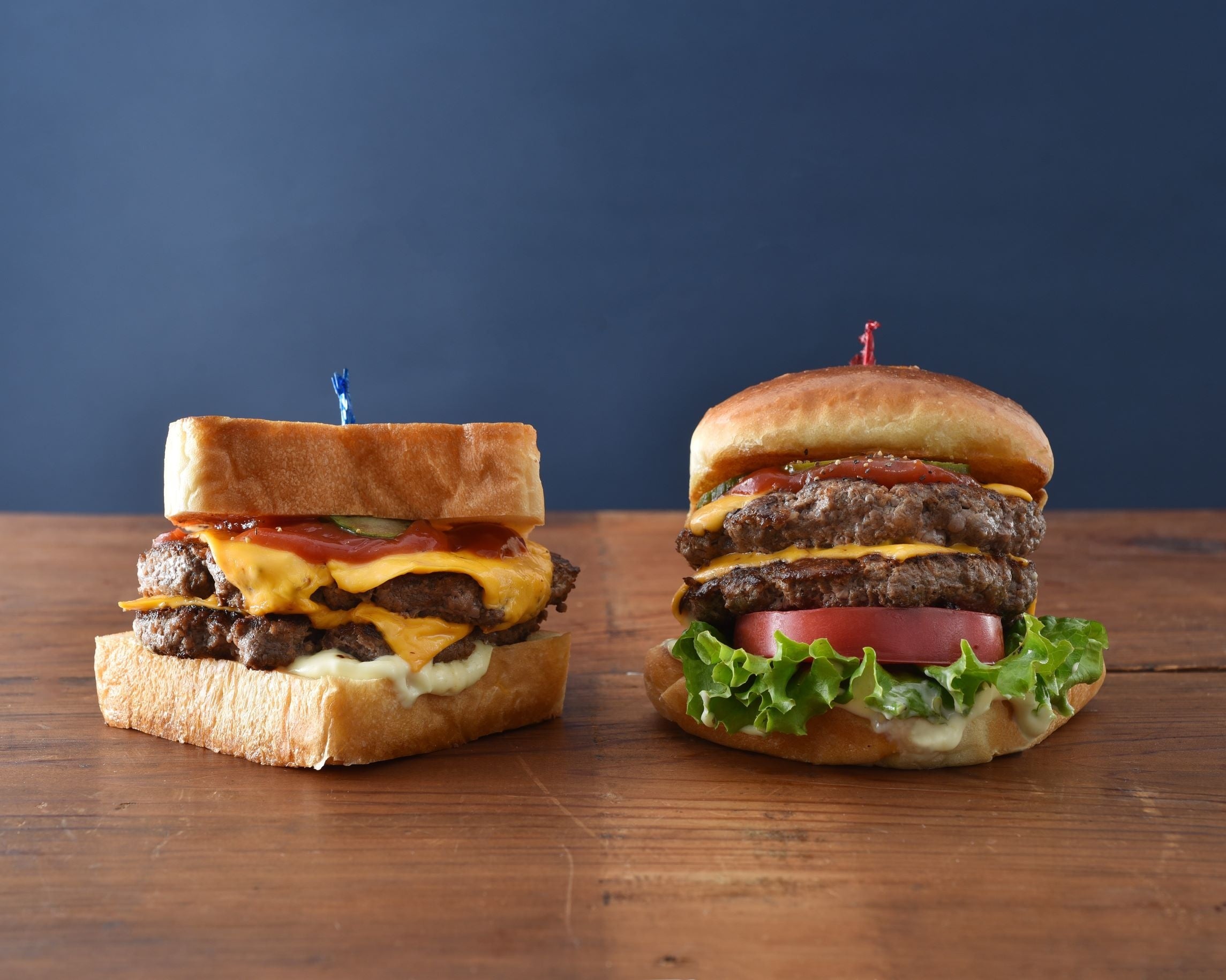 ★ビーフ100%スマッシュパティ:つなぎを使わない粗挽き100%ビーフを高温の鉄板で押し焼きする“スマッシュ”製法により、外はカリッと、中はジューシーな食感を実現しています。