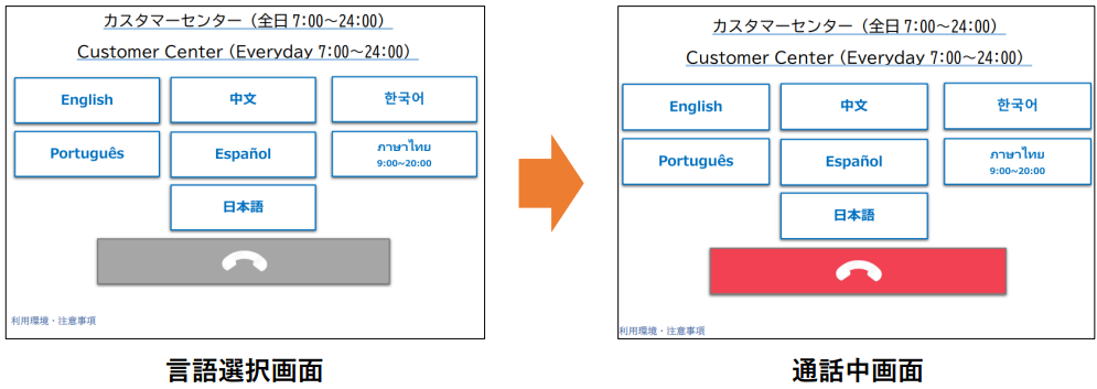 STEP2:画面上で希望する言語を選択しボタンをタップするだけで通話が可能
