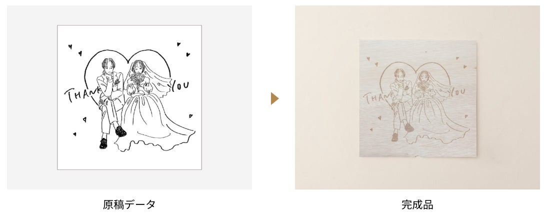 これまで、弊社のサイトでは贈り主様が手書きなどで制作したイラストを、弊社の木箱に彫刻するサービスを提供してまいりましたが、イラストの作成が得意でない方でも、オリジナルでユニークなデザインでギフトを贈りたいとのお客様の声から、今回のサービスが始まりました。