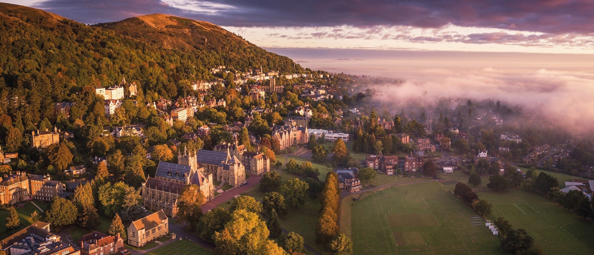 ロンドンから北へ3時間半ほどの自然が素晴らしいシュロップシャーにあるボーディングスクール。イギリスでは『進化論』のチャールズ・ダーウィンの母校として知られている。伝統を守りながらも生徒を尊重するリベラルな学校。Year 9の生徒はボートを必修とするなどスポーツにも力を入れている。慶應義塾一貫教育校派遣留学制度の提携校の一つ。