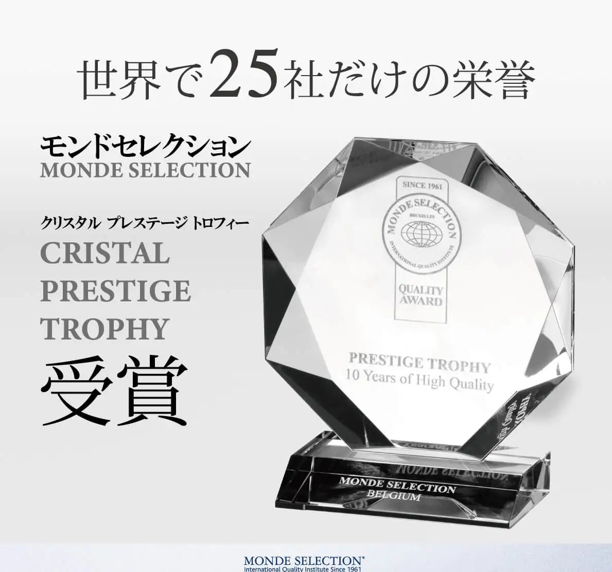 マナビス化粧品はモンドセレクションを10年連続して受賞した証として、モンドセレクションより「クリスタルプレステージ記念トロフィー(2023年度)」を授与されました。
