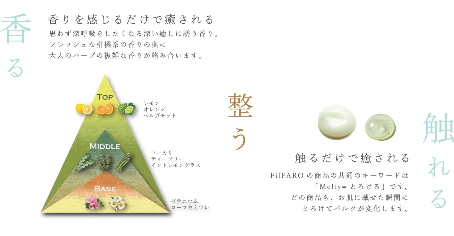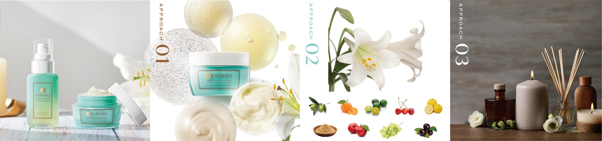 その時間は自分のお肌と、そして自分自身と向き合い、いつくしむ大切な時間です。「FilFAROのスキンケア」で毎日のスキンケアの時間が“心地よい特別な時間”になってほしい…。