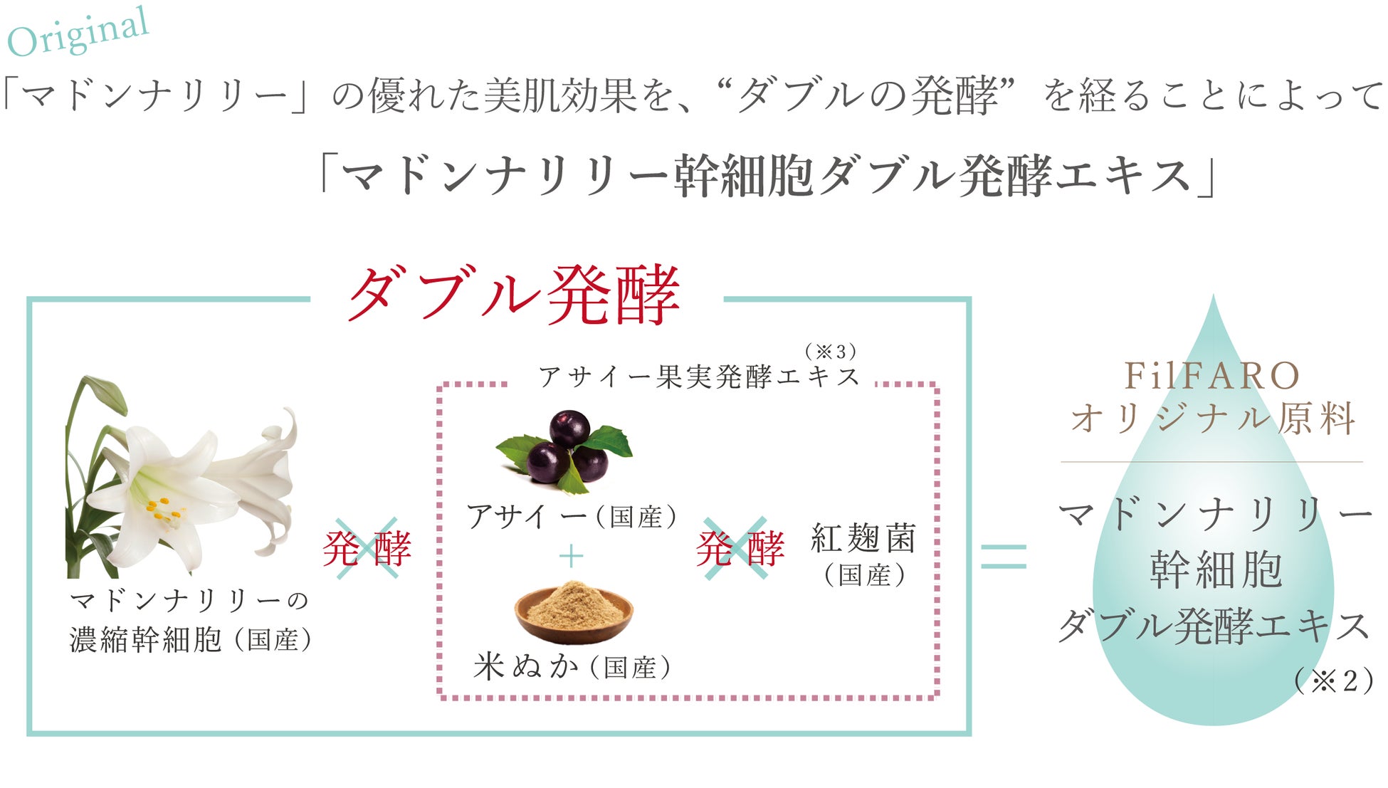 1)<オリジナルパワー保湿成分>マドンナリリー幹細胞ダブル発酵エキス(※1,2)
