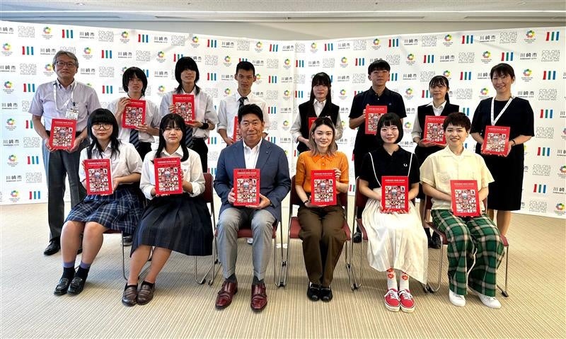 このたび、配布に先立ち、 SHISHAMOと市長から、市内学校を代表して川崎市立高津高等学校と神奈川県立川崎高等学校の軽音楽部の生徒たちにバンドスコアを直接手渡ししました。