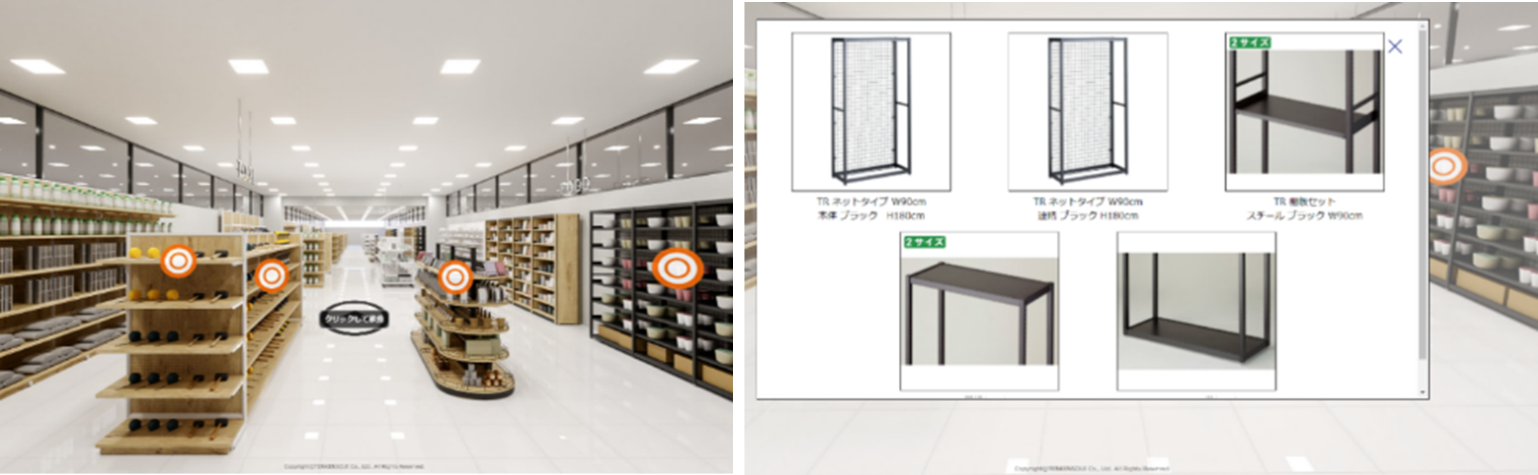 (左)雑貨店(右)アパレル のバーチャルショールーム