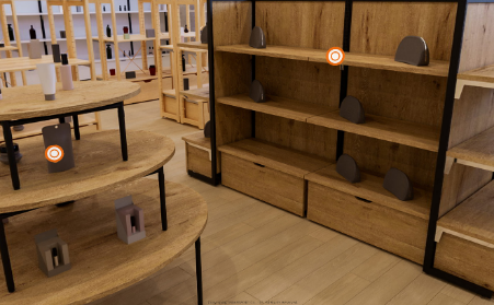 一方で、サイズ・タイプやオプションの選択、必要数量の割り出しなど、什器選定が難しいというお客様のお声や、ショールームやカタログ・ECサイトでは紹介スペースが限られ、使用イメージを十分に伝えられないという課題があり、バーチャルショールームの開発に至りました。バーチャル空間に構築された業種別ショールームは、自由に見てまわることができ、リアルショールームのような感覚で、当社オリジナルの主要什器を確認することができます。