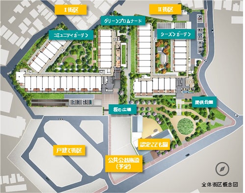 本プロジェクトは約3.3万㎡の広大な敷地にマンション街区×戸建街区(予定)×公園(※1)×認定こども園×公共公益施設(予定)を抱く大規模複合開発の街づくりとなります。
