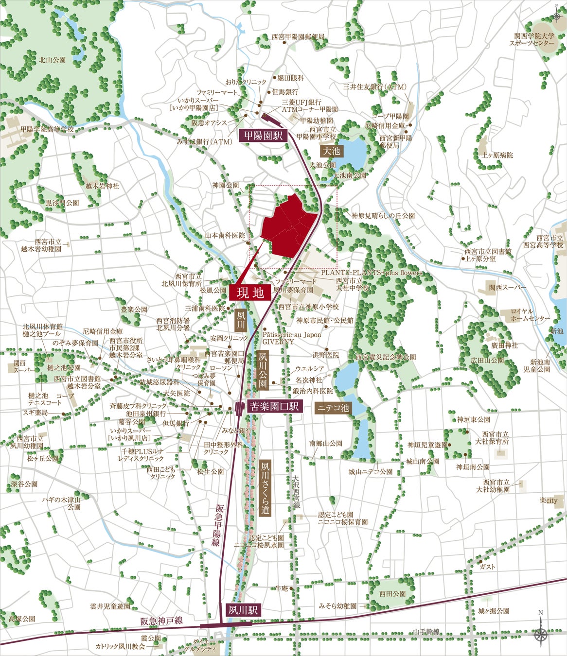 交通: 阪急甲陽線「甲陽園」駅 徒歩10分〔Ⅰ〕徒歩 8分〔Ⅱ〕