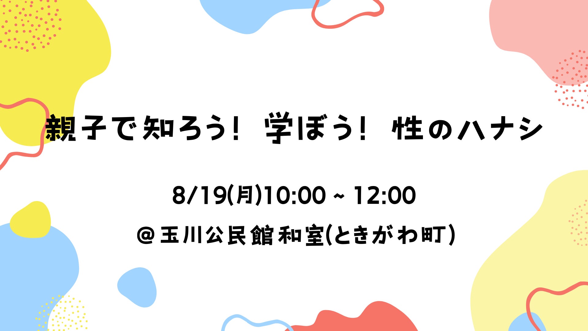 特定非営利活動法人にじの絲(所在地:埼玉県ときがわ町/代表理事:吉野愛)は、8月19日(月)10時より、ときがわ町玉川公民館和室にて「親子で知ろう!学ぼう!性のハナシ」を開催します。子どもたちがスマホ等から誤った性の情報に出会うリスクが増加する夏休みに、親子で正しい性の知識を学ぶ機会を提供します。参加費は1家族1000円。事前申込み制です。