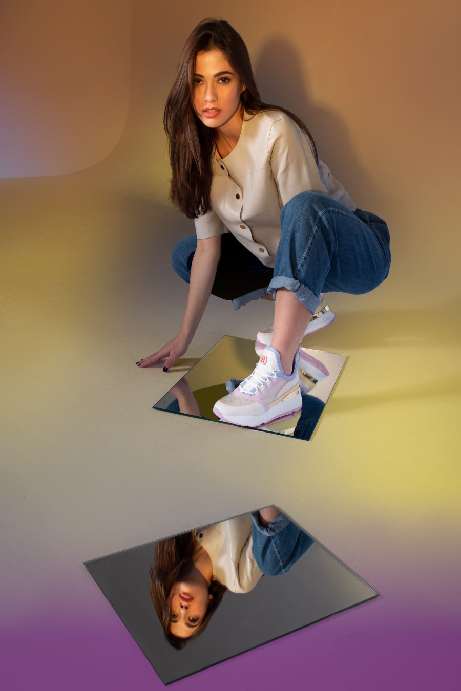 上品な印象を残すディテールワークが絶妙なバランスで一足の中に共存し、スタイルアップはもちろん、ファッショナブルなトータルコーディネートを可能にしています。女性の魅力を引き出してくれるスニーカーを中心に展開しております。