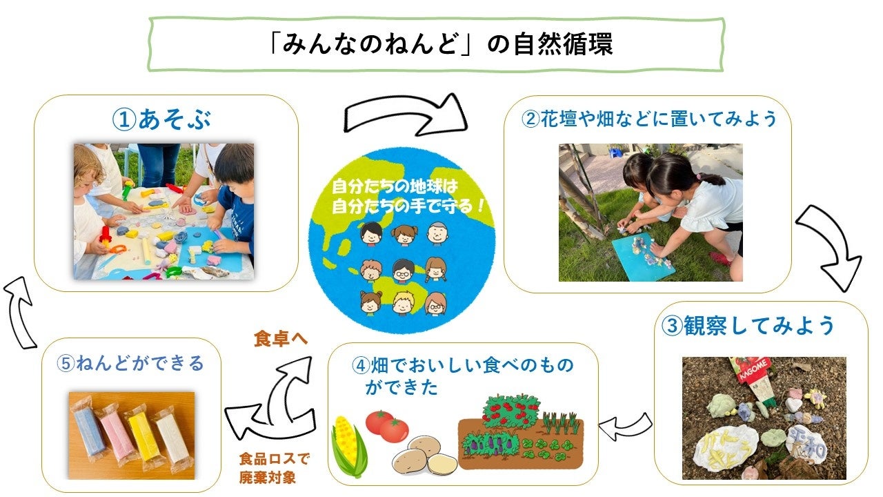 地球温暖化や異常気象などの環境問題、高齢化や少子化などの人口問題、社会課題は山積みです。私たちは子ども達に何が残せるでしょうか。そこで、残野菜(お米、とうもろこし、じゃがいも等)を使った地球にやさしい循環型の新しいねんど「みんなのねんど」に注目しました。