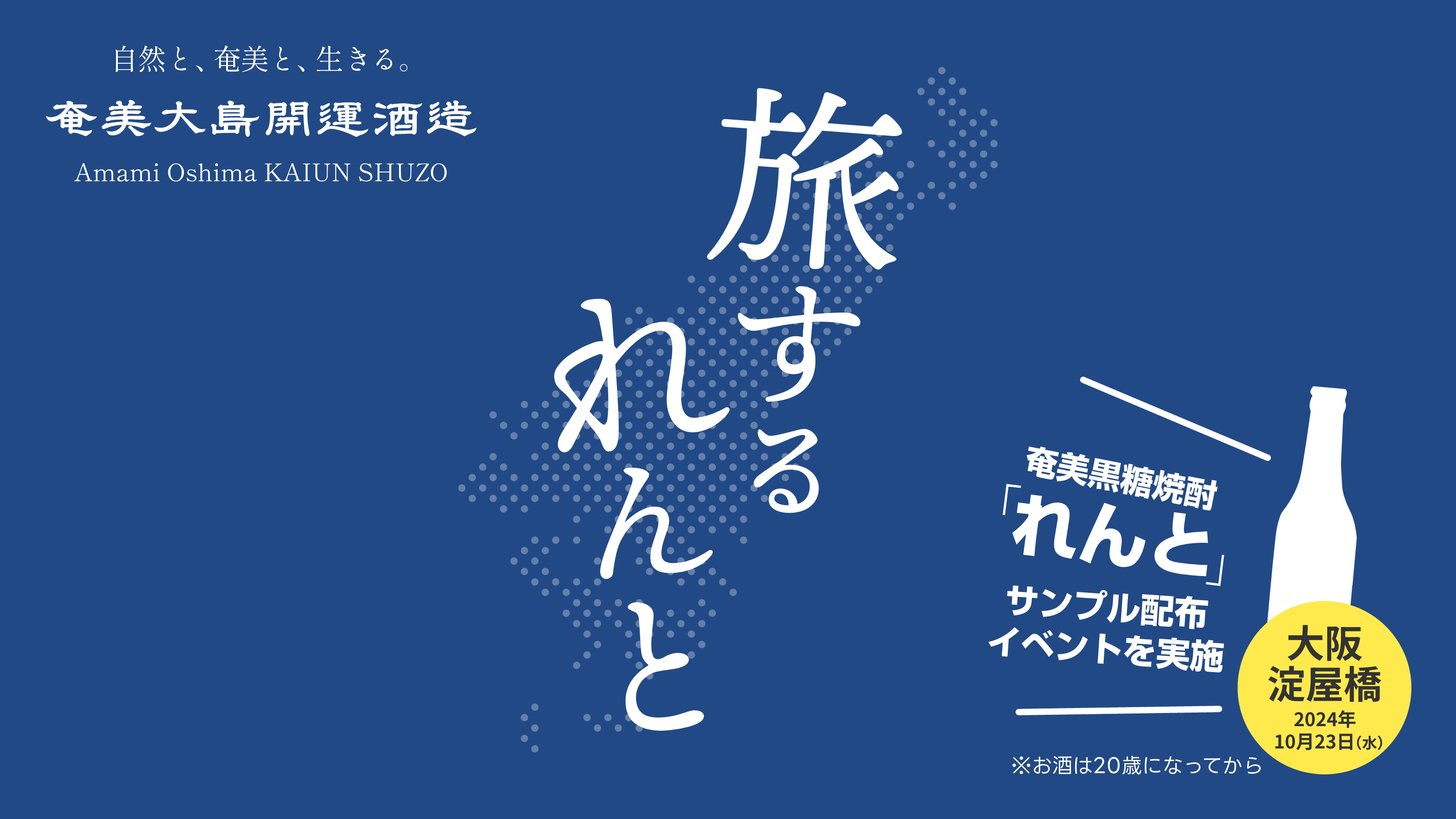 株式会社奄美大島開運酒造(代表取締役 渡 慶彦、本社:鹿児島県大島郡宇検村)は、代表銘柄である奄美黒糖焼酎『れんと』の特別イベントとして、2024年10月23日(水)に大阪市の淀屋橋駅周辺にて「旅するれんと in 大阪」を、2024年10月25日(金)に静岡市の静岡駅周辺にて「旅するれんと in 静岡」を開催いたします。これらは街頭サンプリング(以下、本イベント)として実施いたします。
