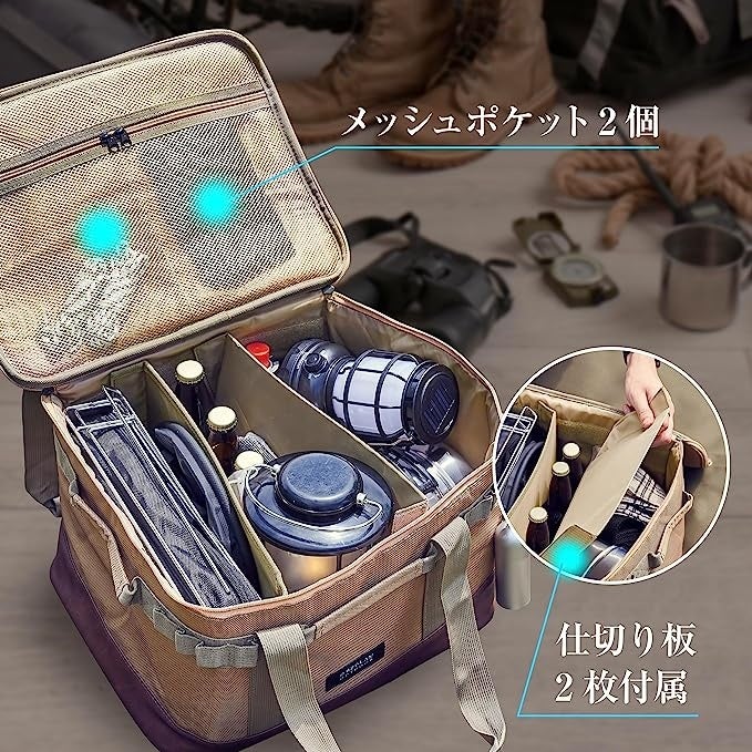 アウトドアで必須の小物類を小分けに収納。「収納しやすいからこそ、使いたくなる!」仕切り板付き&大容量のスマートなアウトドアバッグ|BZGLAM(ビズグラム)