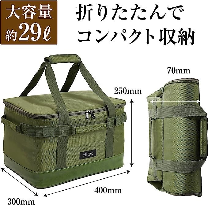 車にも詰め込みやすいコンパクトサイズ。アウトドアシーンだけではなく、もしもの時の防災グッズ入れのバッグとして、ご家庭での保管もしやすいサイズです。