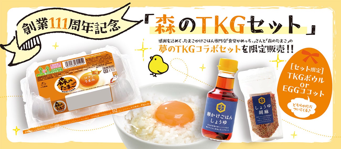 「森のTKGセット」(森のたまご6個入+卵かけごはんしょうゆ+しょうゆ胡麻のセット販売です)
