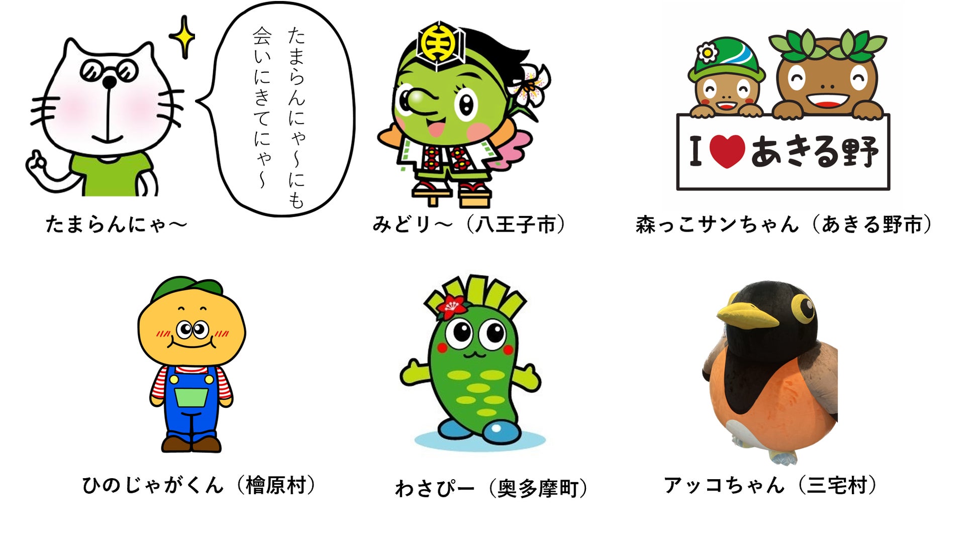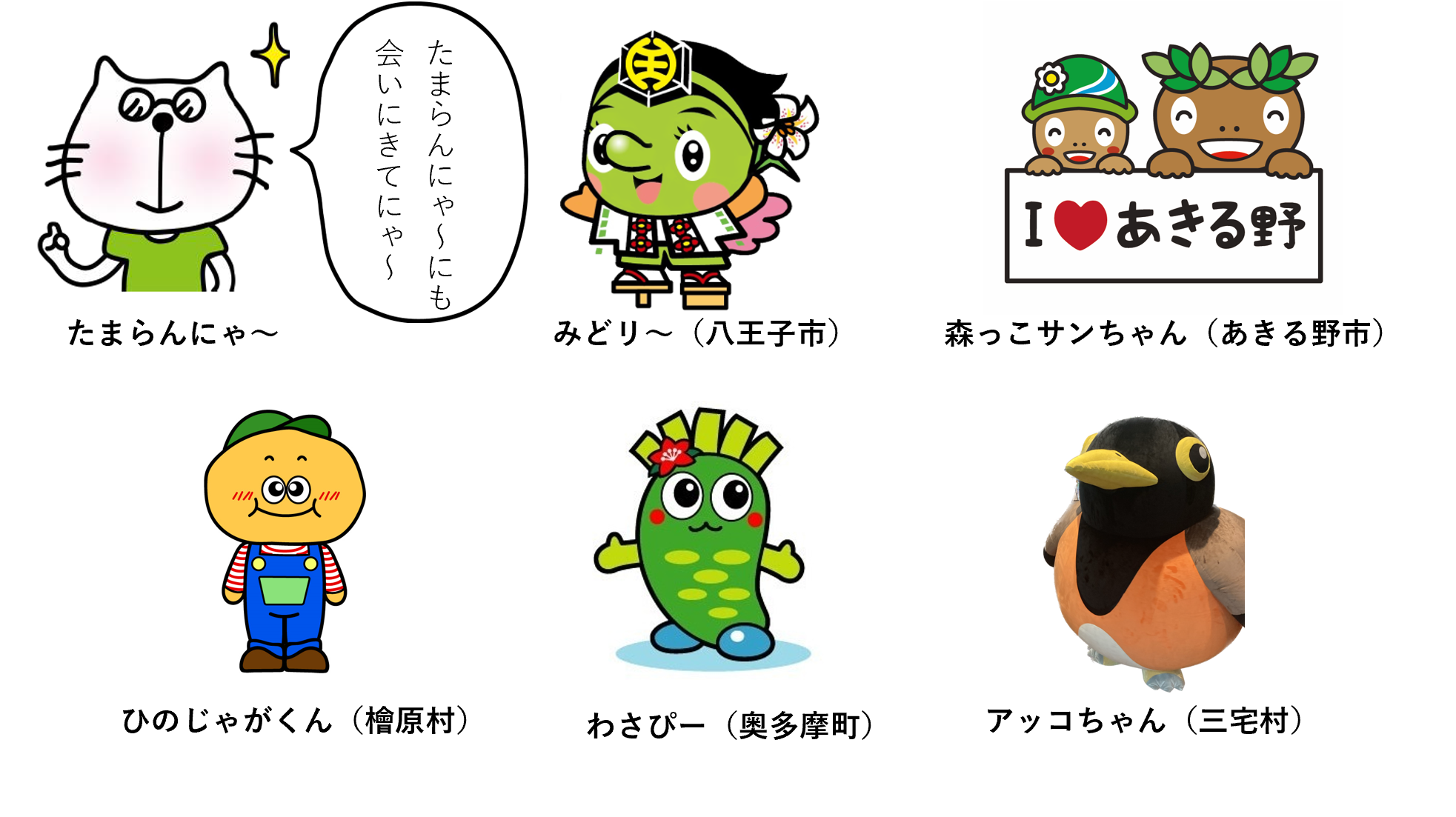 多摩地域の魅力発信マスコットキャラクター「たまらんにゃ~」をはじめ、多摩島しょ地域の