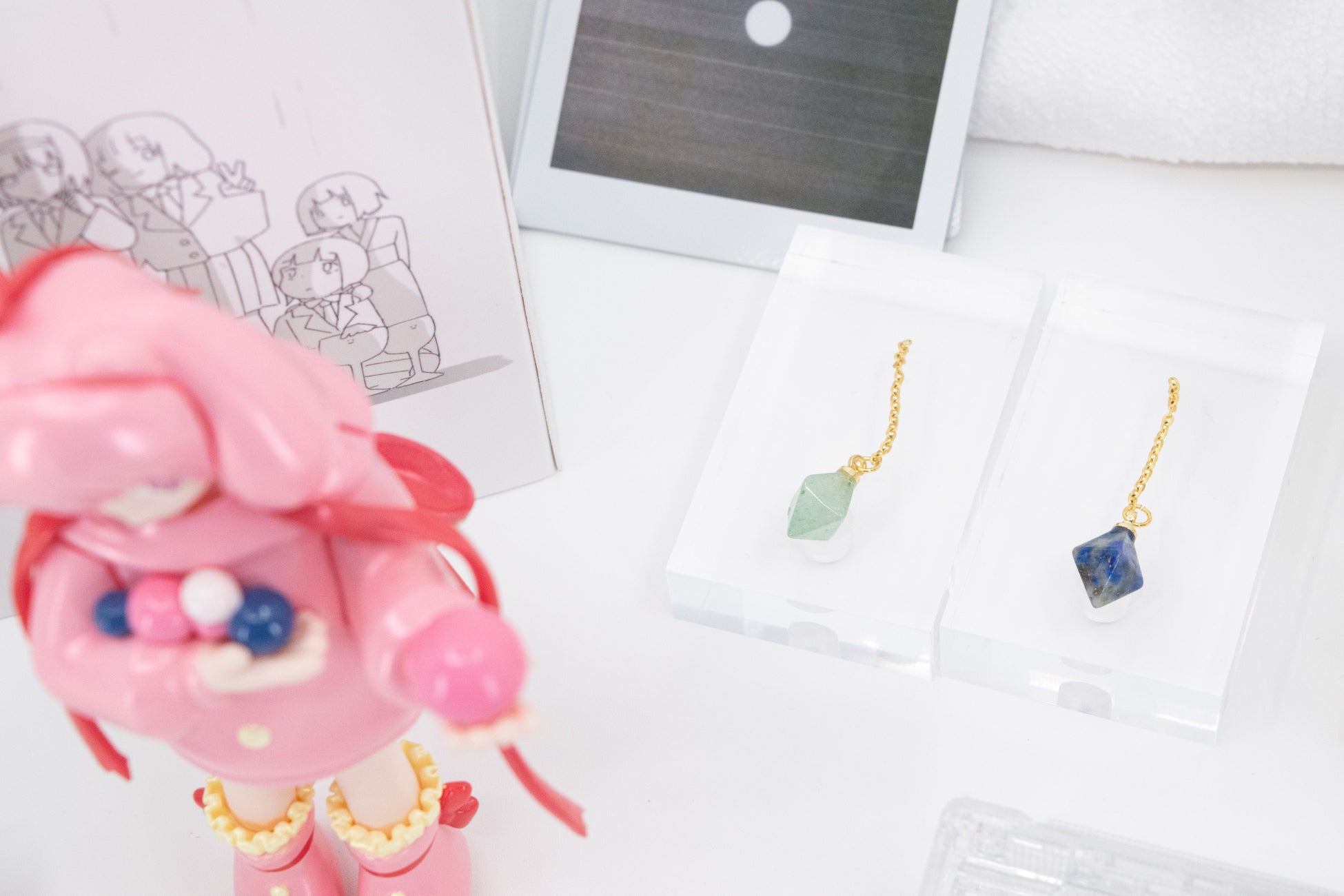 【6.ナナのイヤリングチャーム】「彗星になれたなら」に登場するキャラクター"ナナ"の使用品を再現したイヤリングチャーム。イヤリングとしてもストラップとしても使えます。天然石 ラピスラズリ / アベンチュリン