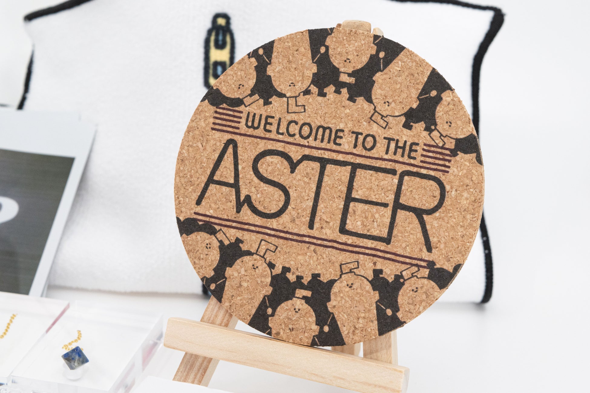 【9.ASTERログインボーナスコースター】「アスター」に登場する"ドリンクくん"が集合したコルクコースター。直径約9cm