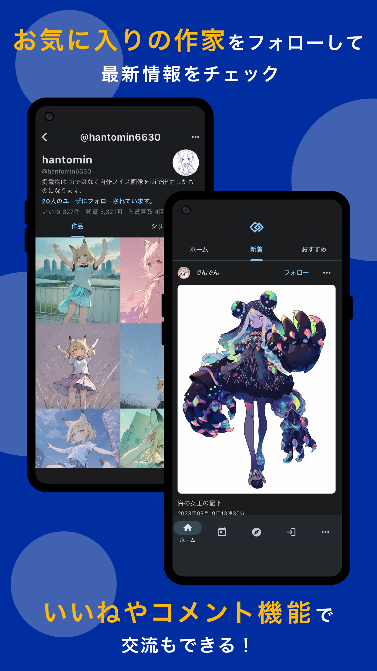 多くのAIイラストを楽しみ、交流のできるアプリとなっております。