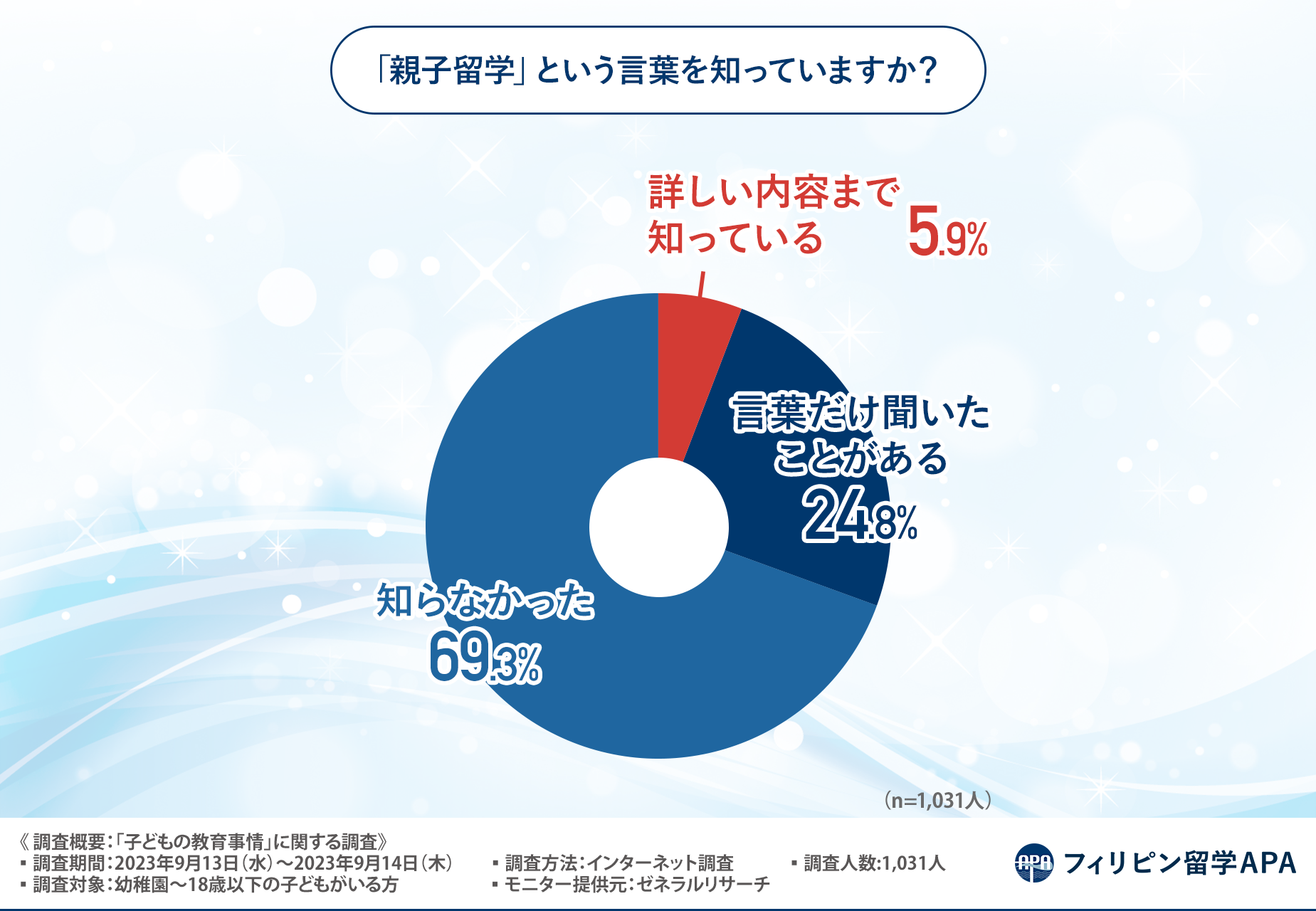 さまざまなメリットがある「親子留学」ですが、実際に「親子留学」に関してどれほど認知度があるのでしょう。