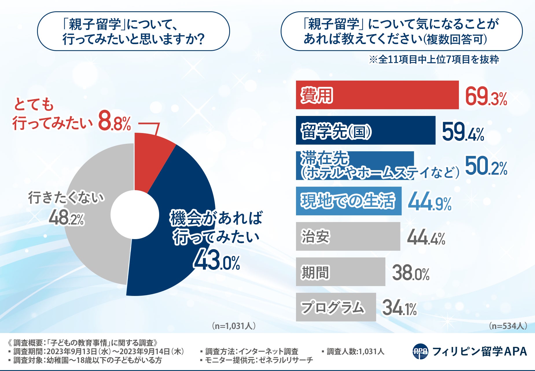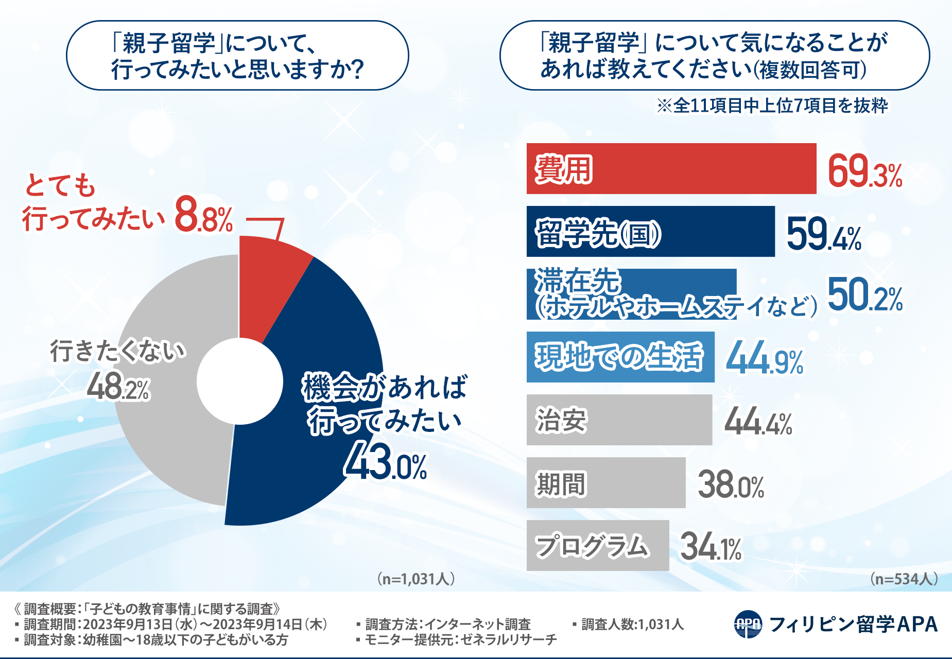 最近では『親子留学』という選択肢も出てきていますが、認知度はまだまだ少ないことも判明しました。