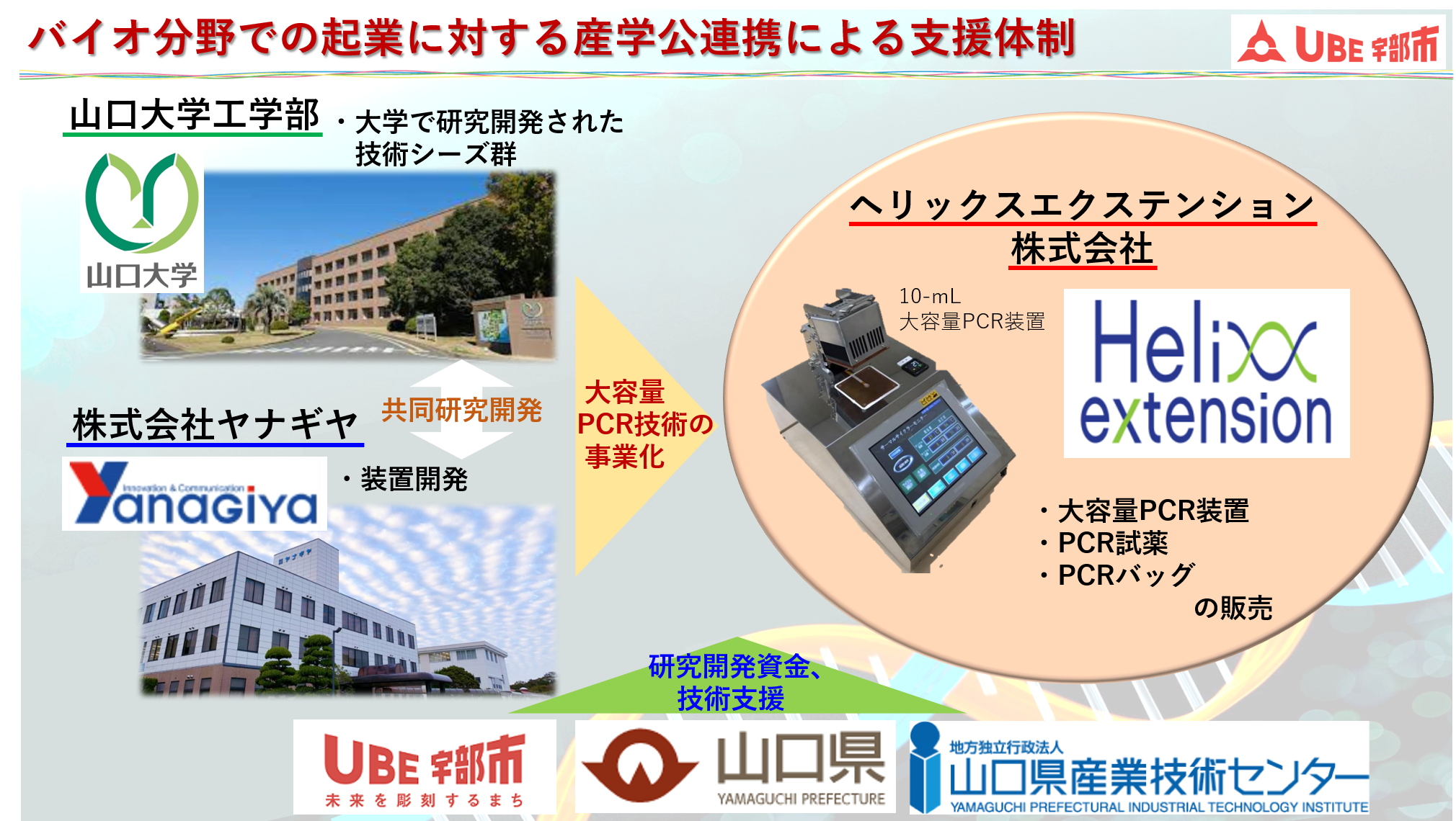 このたび、産学公連携した支援による起業が実現し、山口大学発ベンチャーであるヘリックスエクステンション株式会社が設立されましたのでお知らせします。