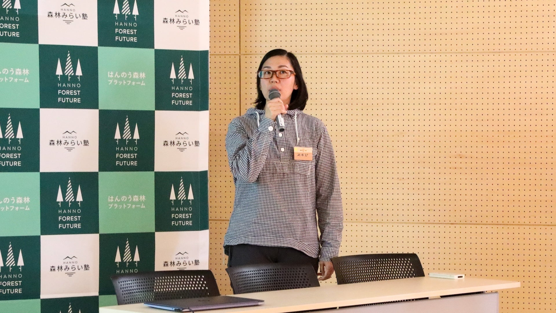 宮治さんは卓球用品のメーカーでラケット製造に携わる制作職の会社員。ご自身のお仕事と、飯能市で生産される西川材とを結びつけて、林業を活性化したいという思いを語りました。